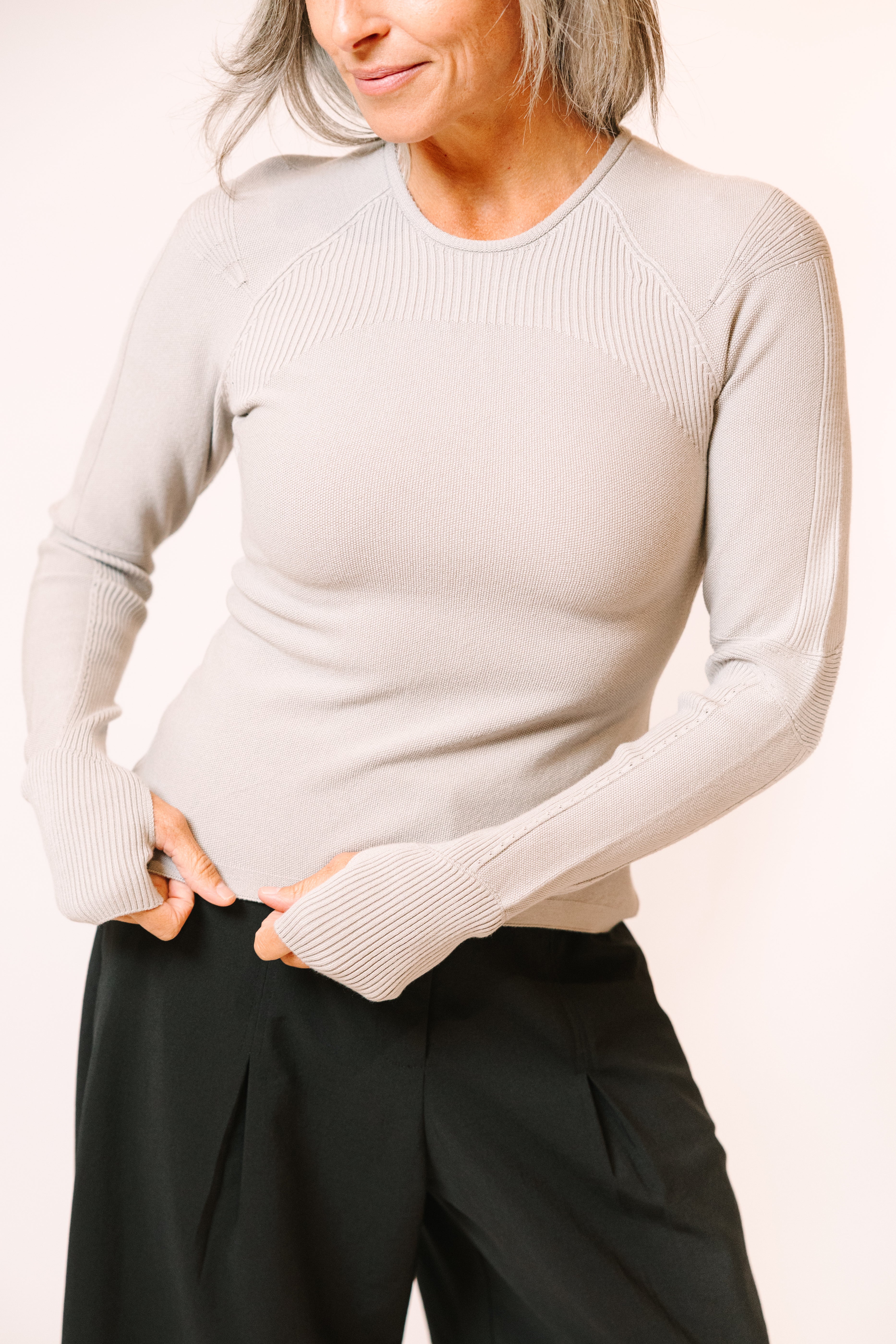 Sculpted Crew with Thumbholes in color peacock, size Large SAMPLE ***STUDIO SAMPLE SALE***