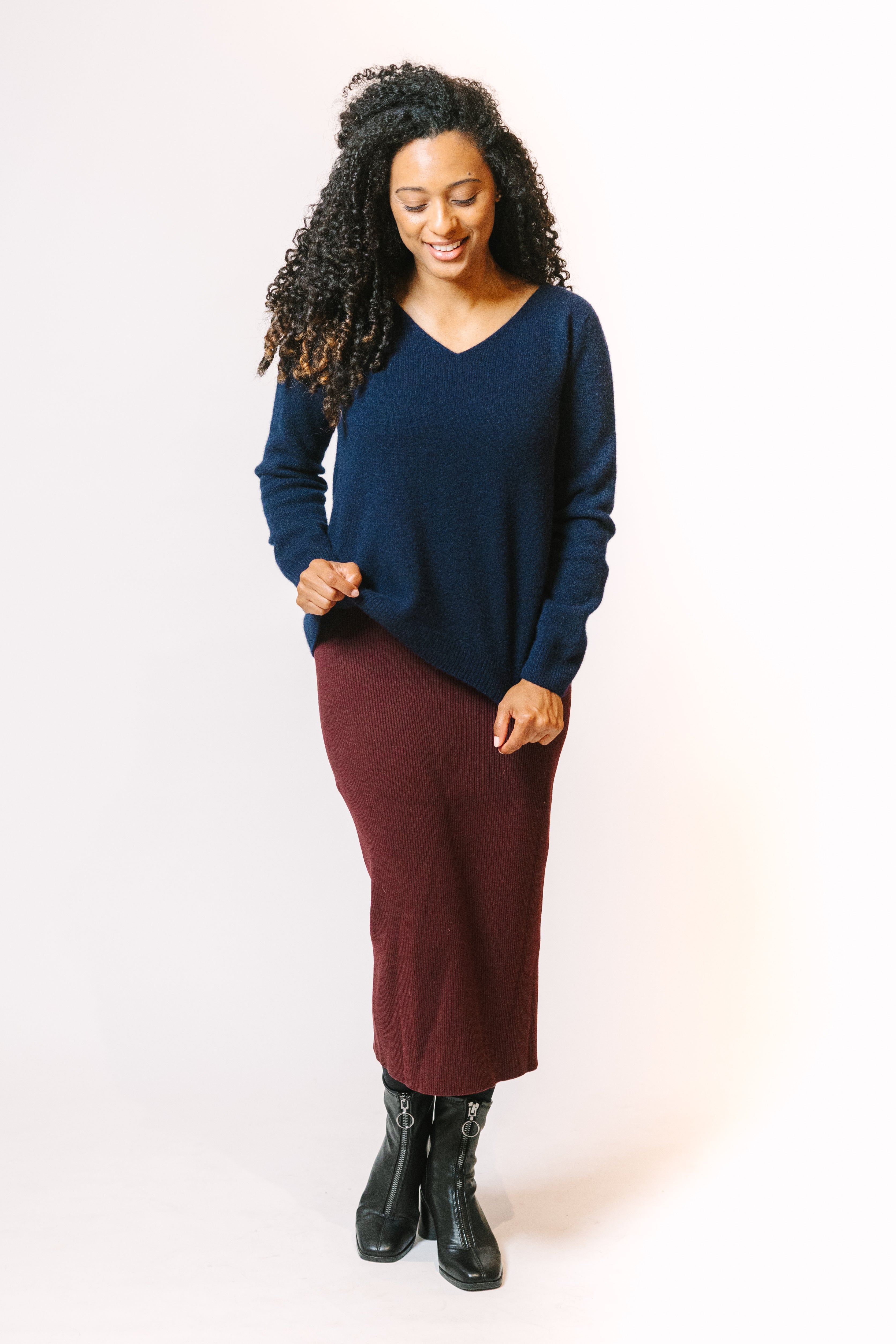 Parisian V Neck Cashmere Sweater in Navy SAMPLE- Size Large ***STUDIO SAMPLE SALE***